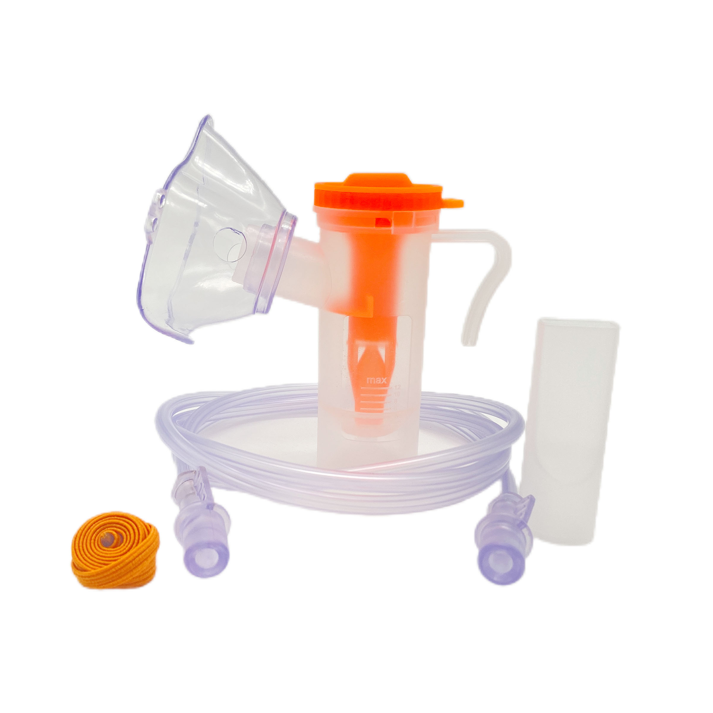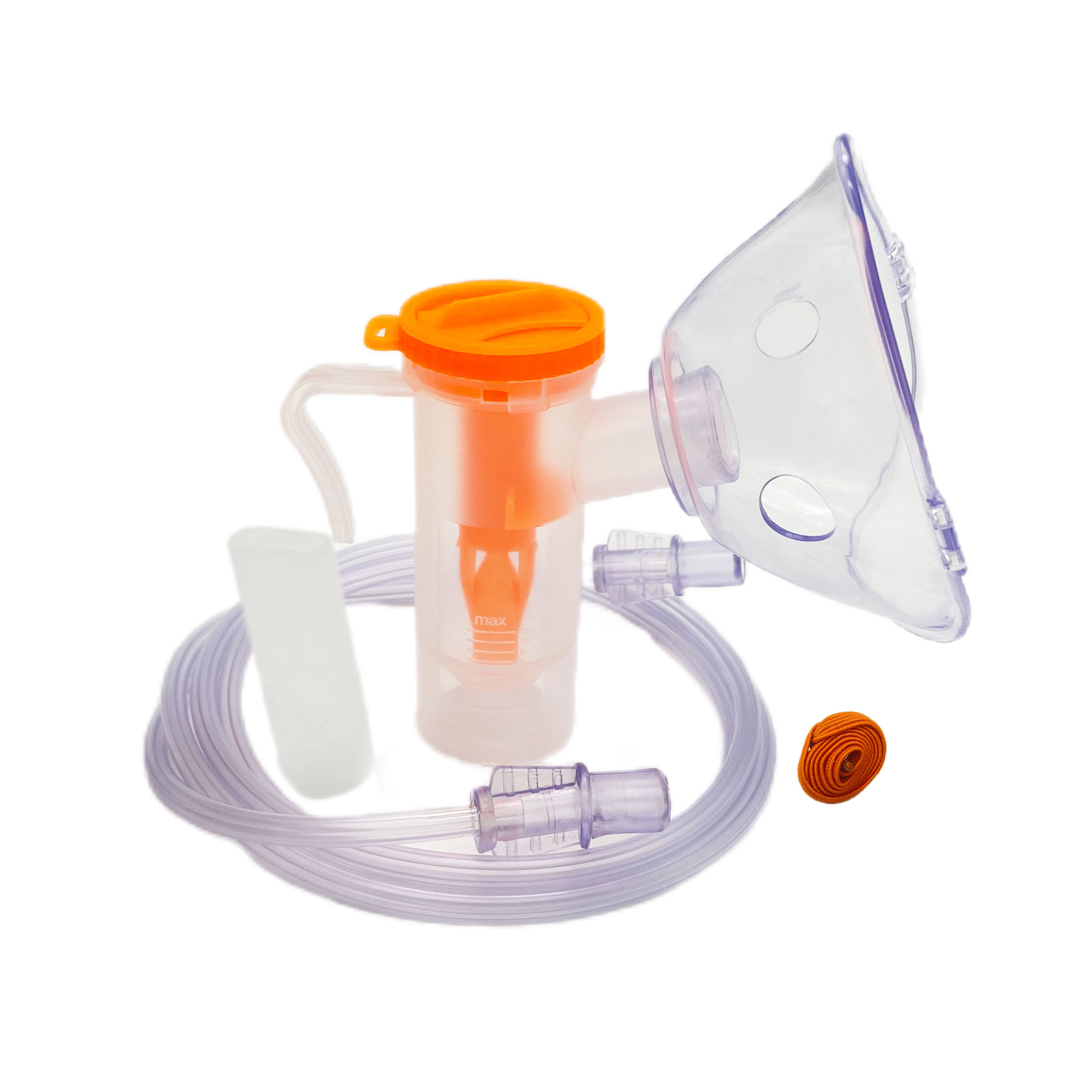由咬嘴、雾化杯、成人面罩、氧气接管、松紧带组成。